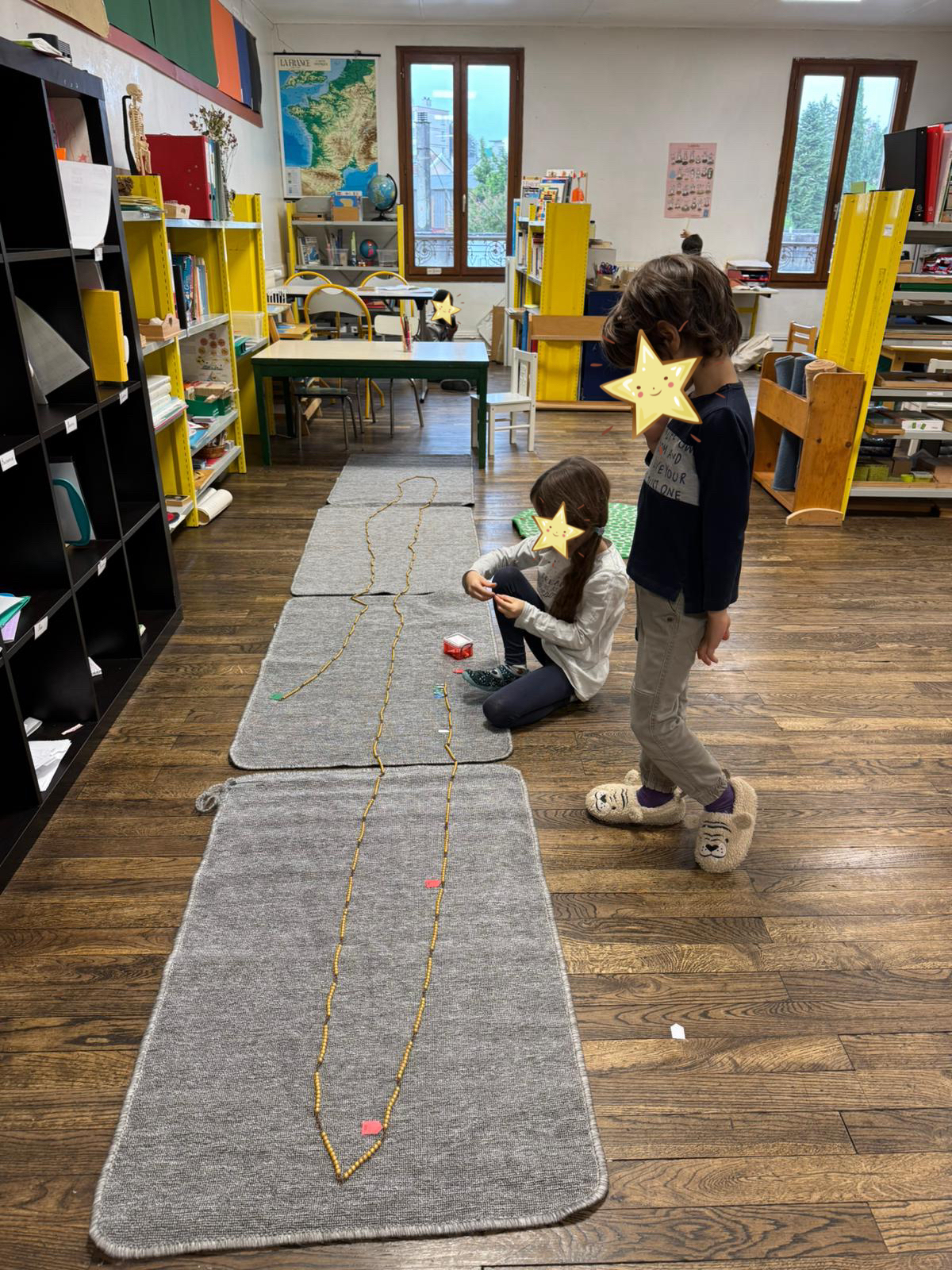 Chaque enfant découvre de nouvelles activités comme la chaîne de 1000, le système solaire, la nature des mots, etc.